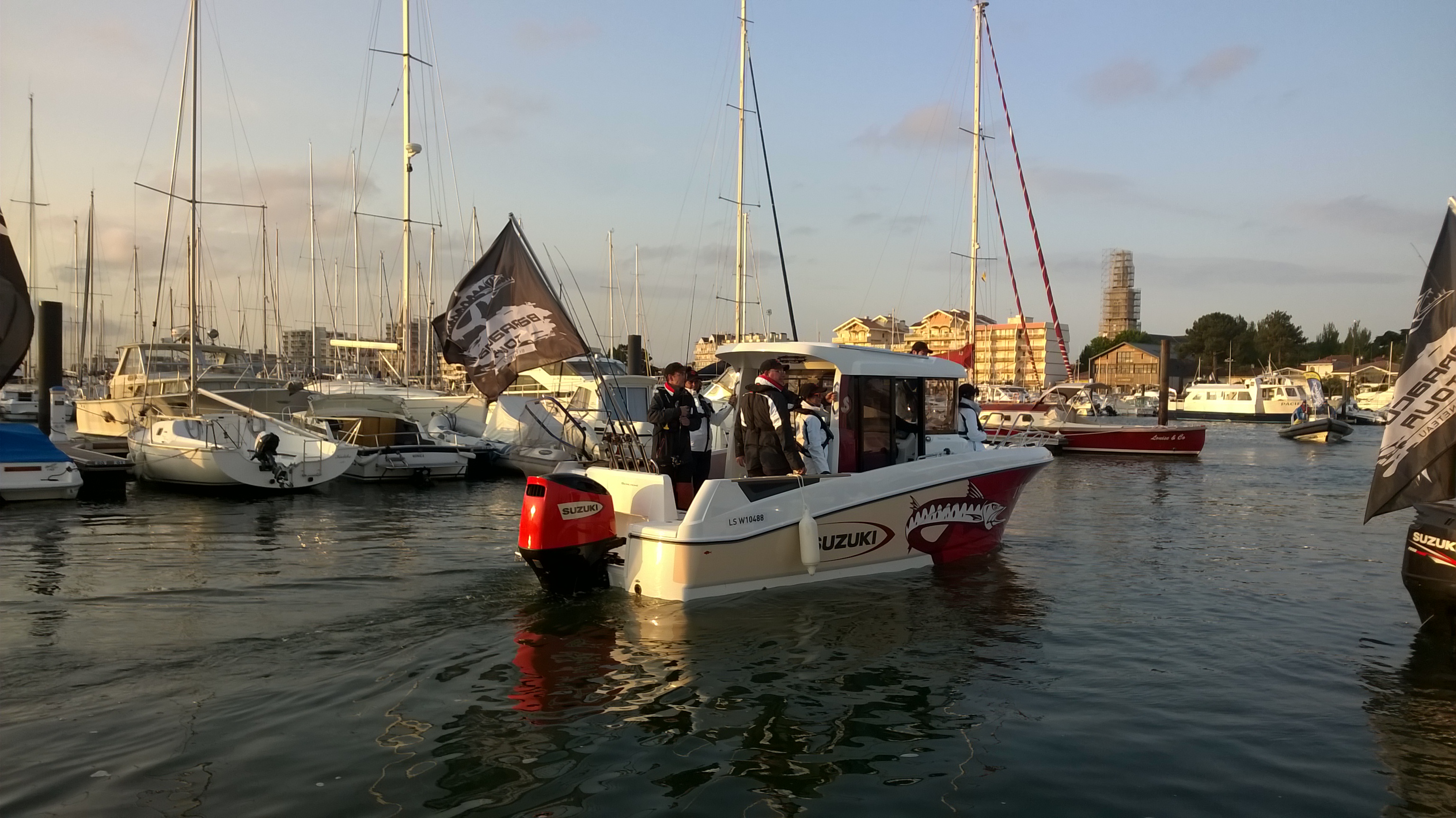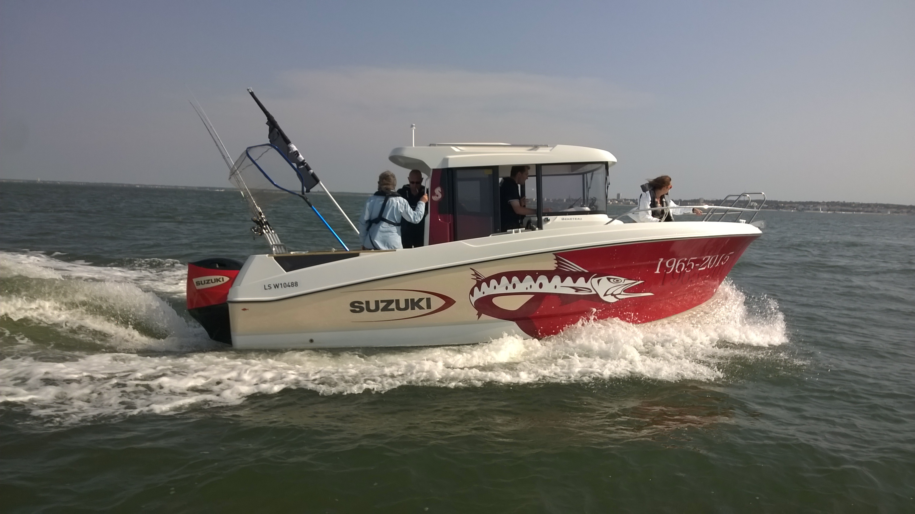 Ad Arcachon e dunque già nel primo week-end di gara in Francia, i partecipanti hanno subito familiarizzato con la presenza nella flotta, di due Barracuda 7 completamente personalizzati Suzuki, uno con livrea bianca e blu, spinto da un Suzuki DF175TG, e l’altro rosso e beige, celebrativo del traguardo raggiunto quest’anno da Suzuki, dei 50 anni di attività della divisione Marine. A sottolineare il significato emblematico della barca, su quest’ultima è stato installato un Suzuki DF200AP in versione custom, con quella stessa colorazione rossa che caratterizzò il primo fuoribordo prodotto dal costruttore giapponese nel 1965, il D55, unità termica di 98cc in grado di erogare 5,5 HP pietra miliare dalla quale iniziò la storia di Suzuki Marine.