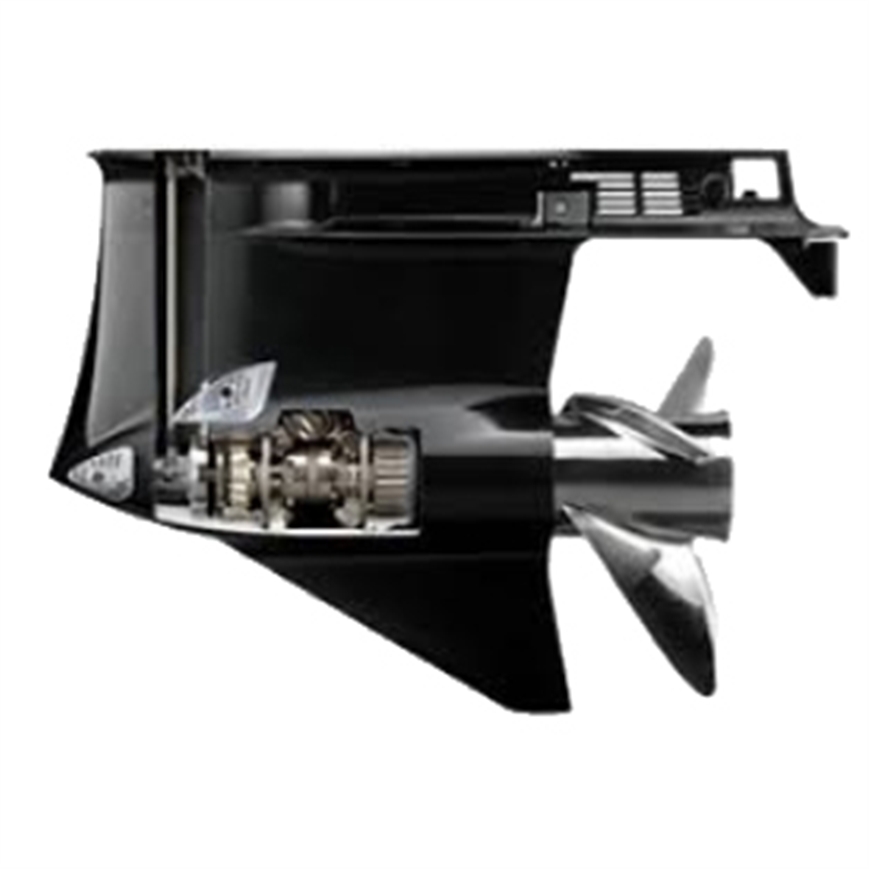 Il Suzuki Dual Prop System del DF350A utilizza eliche di diametro più piccolo, così come di misura ridotta sono gli ingranaggi che si trovano all’interno del piede del motore, nella scatola del cambio. Assolutamente inedita per numero, grandezza e disposizione degli ingranaggi, anch’essa è più piccola rispetto alla norma e ciò ha consentito di disegnare un’ogiva più affusolata e più efficiente in termini idrodinamici.