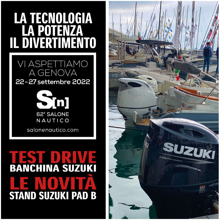 Dal 22 al 27 settembre Suzuki esporrà al Salone Internazionale di Genova, Pad. B, mettendo in mostra la sua gamma di fuoribordo tecnologicamente avanzata e accoglierà gli appassionati in uno spazio rivoluzionato, per offrire ai suoi ospiti una visione concreta di quello che è il mondo Suzuki.