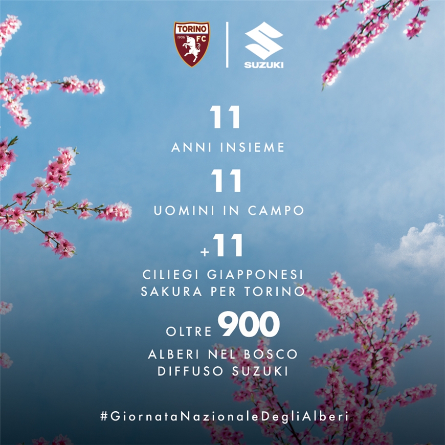 - Per celebrare la Giornata Nazionale degli Alberi, Suzuki e il Torino FC pianteranno 11 ciliegi giapponesi Sakura in una zona prossima allo Stadio Olimpico Grande Torino.