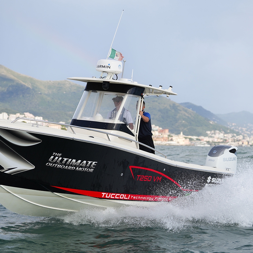 Il Suzuki DF300BMD è il primo fuoribordo da 300HP dotato di un sistema propulsivo a doppia elica controrotante, #spingiforte (Suzuki Dual Prop), fiche tecnica ereditata dal fratello maggiore Suzuki DF350AMD, il top di gamma dei fuoribordo del costruttore giapponese. Anche il Suzuki DF300BMD si basa quindi sul blocco motore sei cilindri da 4,4 litri del DF350AMD, che ne fa l’unità termica di maggior cubatura fra i V6 da 300 HP oggi presenti sul mercato. Proprio in virtù della sua cilindrata offre valori di coppia da primo della classe e, grazie al rapporto di compressione di 10,5:1, anche un notevole risparmio di carburante e grande affidabilità.