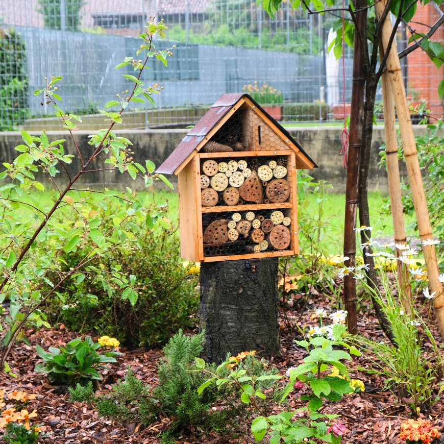 Questo giardino consiste in un’Aiuola Impollinatori: un’area con piante utili a api, farfalle, sirfidi, vespe, coleotteri e falene, che fornisce una fioritura scalare dalla primavera all’autunno. All’interno del Giardino delle Api Suzuki, il Bee Hotel offre un nido dove la comunità di impollinatori può crescere, garantendo così la biodiversità, migliorando la fertilità del suolo e incrementando la pollinazione naturale.