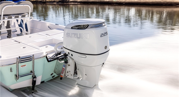 Sotto la calandra, il DF225 monta un potente motore a 6 cilindri da 3.614 cc con 4 valvole per cilindro e doppio albero a camme in testa. È dotato di asse di trasmissione disassato rispetto all’albero motore, il che permette di avere una prima riduzione tra albero motore e albero di trasmissione ed una seconda riduzione tra albero di trasmissione e la scatola ingranaggi all’interno del piede. Questo meccanismo sposta in avanti il baricentro conferendo al motore maggiori equilibri, minori vibrazioni e maggiore stabilità durante la guida; inoltre, consente di montare eliche con diametri maggiori per sfruttare al massimo l’efficienza propulsiva del motore.