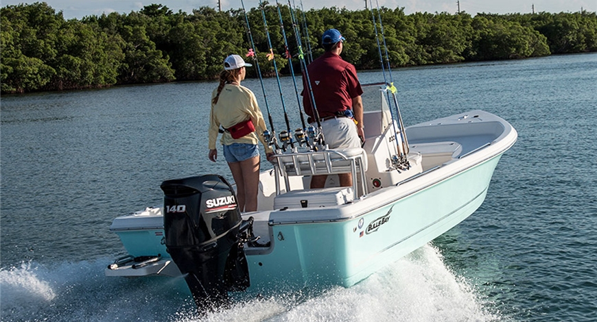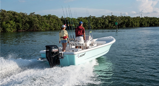 Il compatto Suzuki DF140A monta un motore DOHC 16 valvole da 2.045 cc dotato di asse di trasmissione disassato rispetto all’albero motore. Ciò permette di avere una prima riduzione tra albero motore e albero di trasmissione ed una seconda riduzione tra albero di trasmissione e la scatola ingranaggi all’interno del piede.
