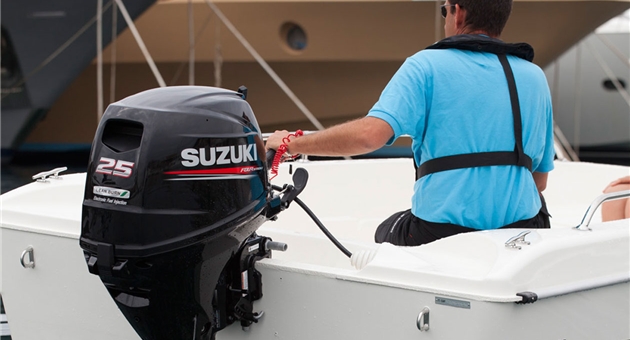 Il Suzuki DF25A monta un motore a tre cilindri da 490 cc ed è il fuoribordo più leggero della sua categoria. E’ inoltre il primo ad avere la distribuzione con bilancieri provvisti di roller che utilizzano l’albero motore disassato. Posizionandolo leggermente decentrato rispetto al cilindro, la pressione laterale contro lo stesso viene ridotta incrementando notevolmente l’efficienza di funzionamento.