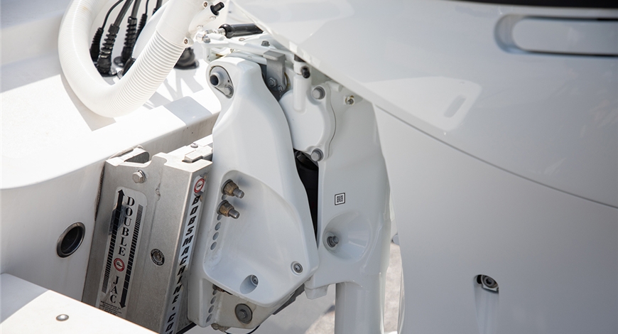 Il design del piede è stato rivisto riducendo del 4% le dimensioni della parte frontale: in questo modo, grazie alla riduzione dell'attrito, è stato possibile incrementare la velocità massima di oltre il 2%. Anche l'olio richiesto per la lubrificazione degli ingranaggi è stato ridotto, passando da 3,2 a 2,8 litri, e si può intervenire nel cambio olio piede senza sollevare l'imbarcazione.