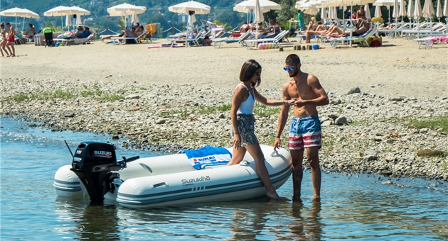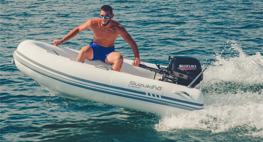Oltre alla facilità di stivaggio, i Suzukino vantano anche un’estrema rapidità nella messa in mare in quanto non è più necessario smontare il fuoribordo ogni volta che si rimessa il tender. Quando lo si deve utilizzare, basta dunque far scorrere all’indietro il supporto, raddrizzarlo ed il battello è subito pronto a navigare.
