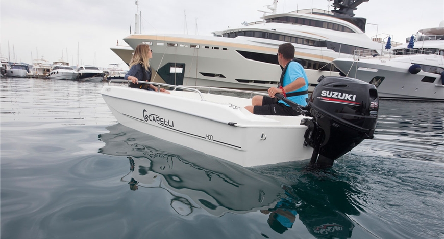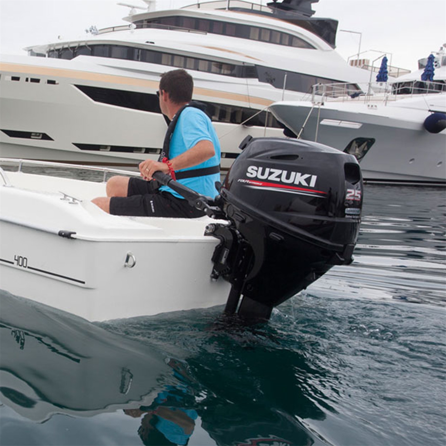 Il Suzuki DF25A monta un motore a tre cilindri da 490 cc ed è il fuoribordo più leggero della sua categoria. E’ inoltre il primo ad avere la distribuzione con bilancieri provvisti di roller che utilizzano l’albero motore disassato. Posizionandolo leggermente decentrato rispetto al cilindro, la pressione laterale contro lo stesso viene ridotta incrementando notevolmente l’efficienza di funzionamento.