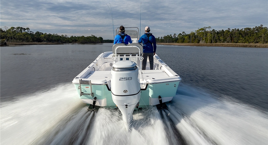 Il nuovo fuoribordo a comando meccanico DF250 beneficia di una serie di miglioramenti tecnologici a partire dal design della calandra, che ora è più compatta ed è stata studiata per includere un sistema di ingresso dell’aria rivisto che riduce la presenza di spray salino e particelle d’acqua nei condotti. Ne consegue una migliore combustione, preservando maggiormente l’unità termica dalla corrosione e dall’usura.