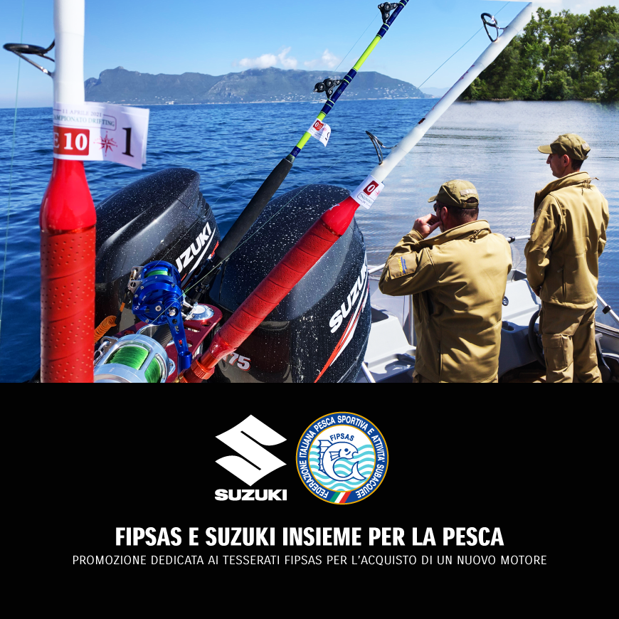 Per sottolineare la partnership con la FIPSAS (Federazione Italiana Pesca Sportiva e Attività Subacquee) e stare vicini al mondo dei pescatori sportivi, agli atleti del nuoto pinnato e della subacquea, Suzuki ha attivato una campagna promozionale, grazie alla quale i tesserati FIPSAS avranno una condizione agevolata per l’acquisto di un fuoribordo Suzuki fino al 31 dicembre 2026.